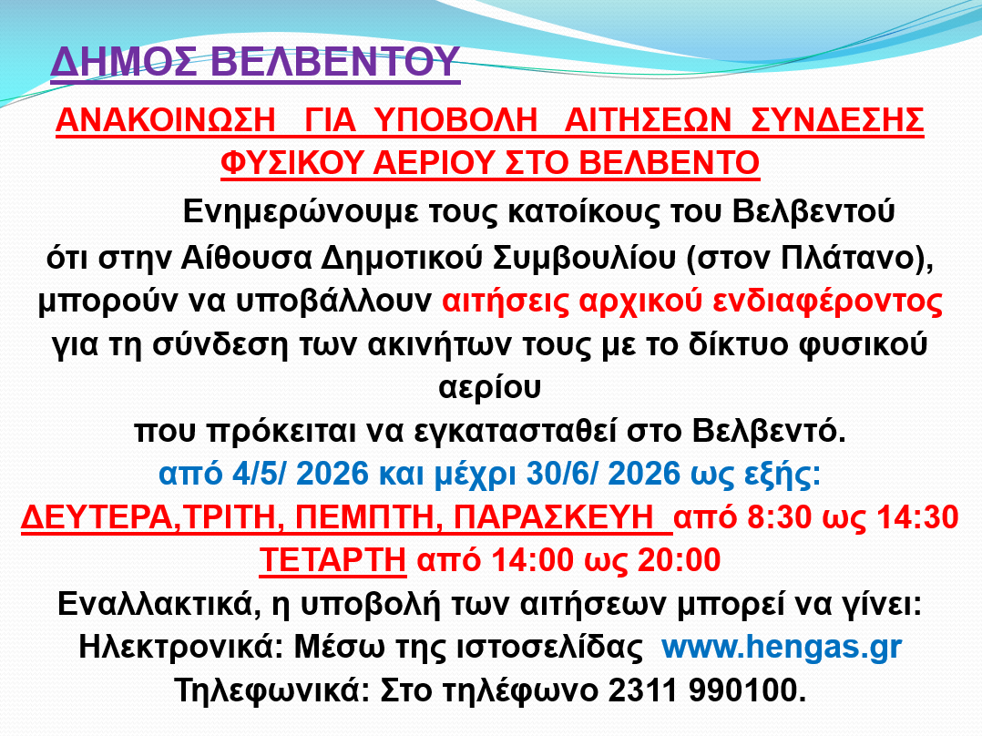 Πρόσκληση 10ης Συνεδρίασης Δημοτικού Συμβουλίου Βελβεντού