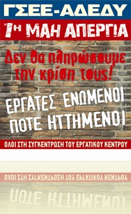 ΟΛΟΙ ΜΑΖΙ ΣΤΗ ΣΥΓΚΕΝΤΡΩΣΗ ΤΟΥ ΕΡΓΑΤΙΚΟΥ ΚΕΝΤΡΟΥ Ν. ΚΟΖΑΝΗΣ ΤΗΝ ΠΑΡΑΣΚΕΥΗ 1η ΜΑΗ & ΩΡΑ 09:30 π.μ.