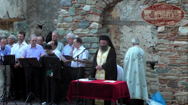 Κοζάνης Αρχιμ. Χριστοφόρος Αγγελόπουλος , ο εφημέριος π. Κωνσταντίνος Θεοχάρης οι Ιεροψάλτες της Ι.Μ. Σερβίωνκαι Κοζάνης ΄΄Ιάκωβος Ναυπλιώτης΄΄ και πλήθος κόσμου. Το υποβλητικό τοπίο και η κατανυκτική ατμόσφαιρα συντέλεσαν σ’ ένα γεγονός αναβίωσης πολιτισμικών στοιχείων του Βυζαντίου. Την διοργάνωση της εκδήλωσης είχε ο Μ.Ο.Σ. ΄΄Τα Κάστρα΄΄ στα πλαίσια του εορτασμού της Αγίας Κυριακής , πολιούχου Σερβίων.