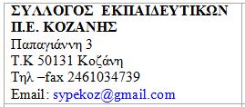 Αντιπρόεδρος: Χαλβατζής Γεώργιος τηλ:6953004811